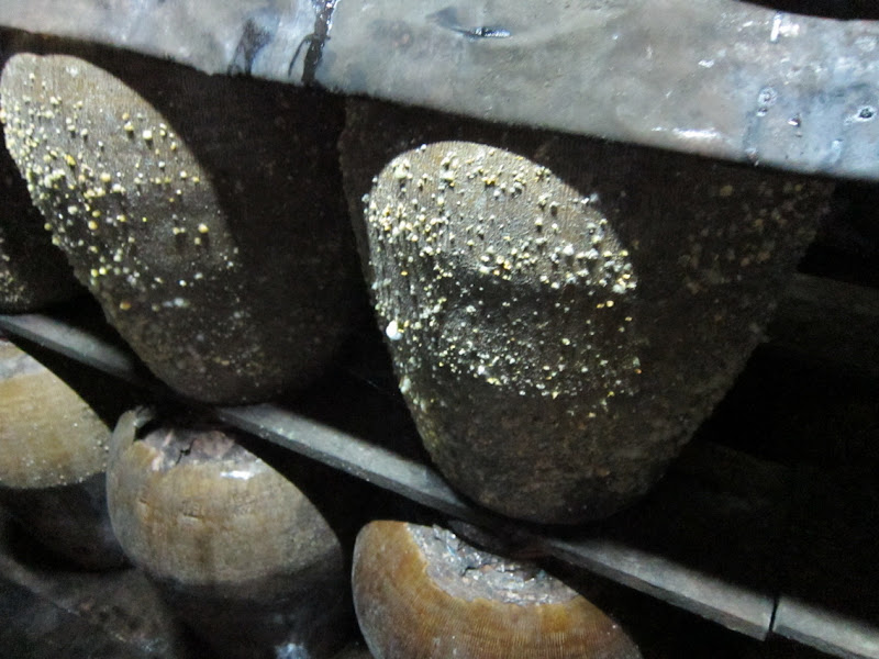 架子上滿滿的酒甕表面都是厚厚的一層黴菌